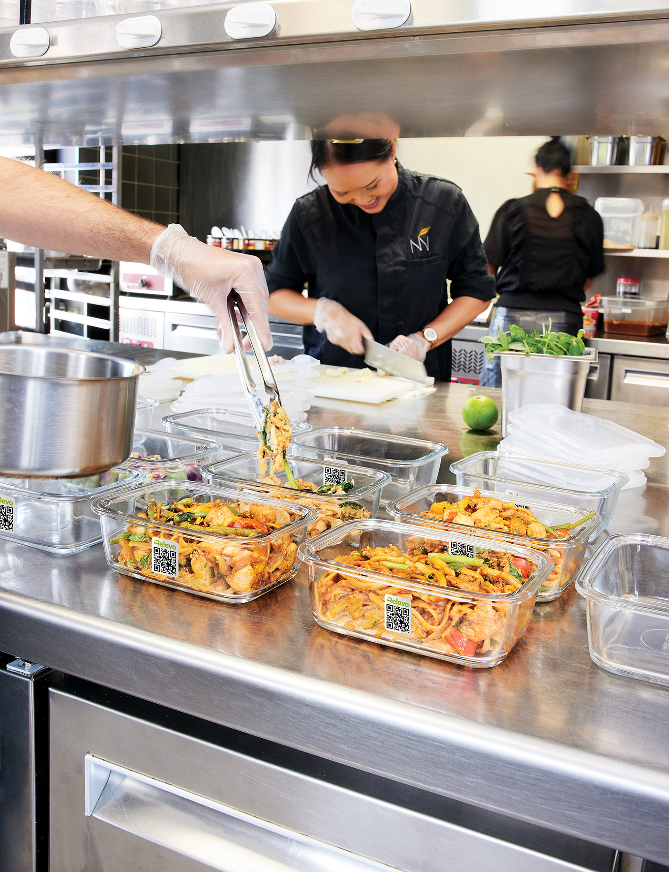 Biete eine 24/7-Essensausgabe mit Ausgabe- und Rückgabeautomaten, Mikrowelle und Vorbestellung per App an.